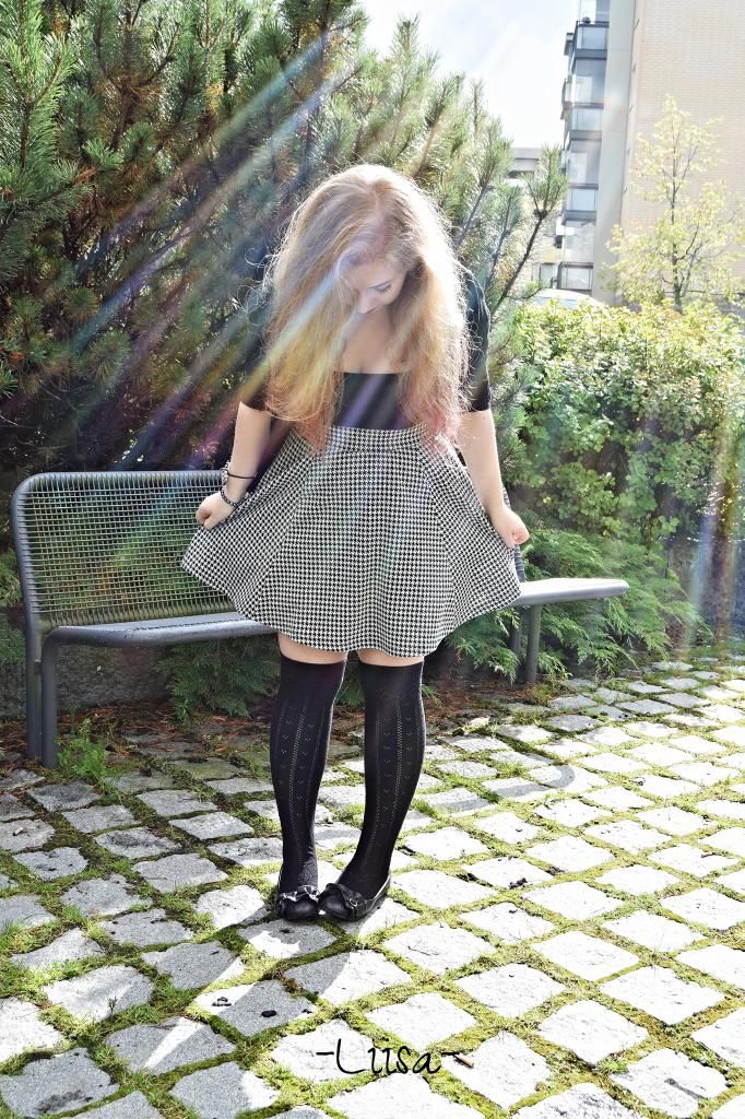 It's been raining for couple of days. Even tough I love rain I have to admit that it has its problems. For example takeing pics. Rainy pics are beutifull but well,I don't want my camera to get wet. Luckily the day I went to the Town to see my friend was a quite warm and rain stopped for a while, so after coffe we decided to go and take some pics. And I must say I have never been good at takeing pics, nor being in them... What is a bit awkward time to time. Suprisingly my friend managed to took couple pics of me, in what I don't look compleatly a mess. So I am going to share them with you guys. Also you can see my new skirt, which I'm in love with!